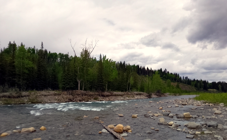 But yesterday, walking an aspen trail along the Elbow River, a deer leapt in the shallows and we stood blinking… the deer’s slender hooves unsteady on the gravelly bottom, some mystery twitching between us, some intense presence, a single shock of grace;